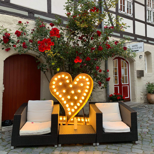 Unser großzügiger Innenhof zwischen Hotel und Restaurant ist die perfekte Kulisse für ein unvergessliches Barbecue. Unter Lichterketten und Sommerhimmel genießen Sie saftige Steaks, frisch gegrilltes Gemüse, duftende Beilagen und köstliche Saucen – alles frisch für Sie zubereitet.